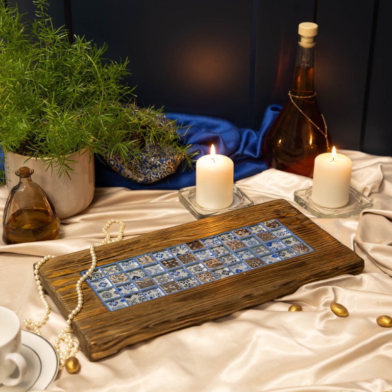 Deska do serwowania z mozaiką 3D – Azulejos i srebrny kamień