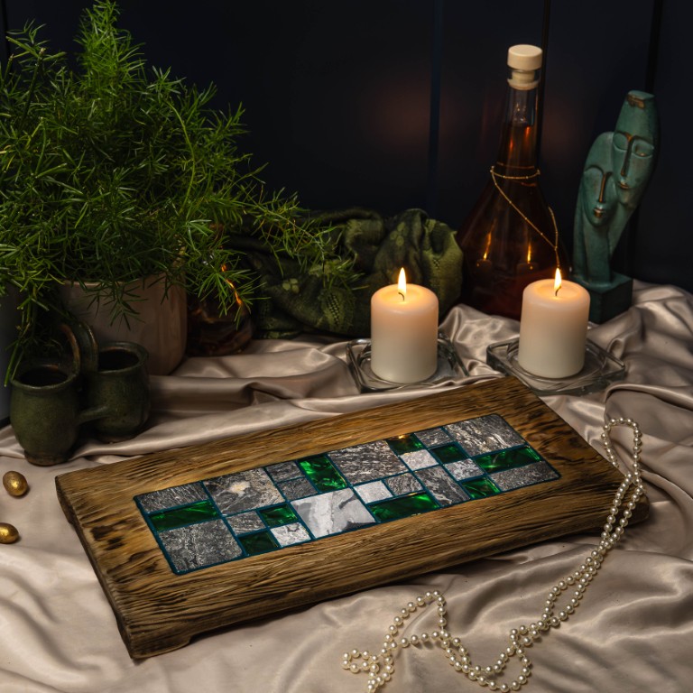 Deska do serwowania z mozaiką 3D – zielony kamień