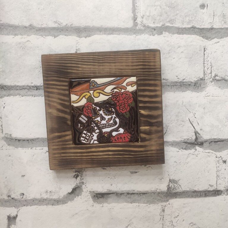 Płytka Catrina Bandida to symbol odwagi, niezależności i buntu. Kolorowa, pełna detali, przyciąga wzrok i wnosi żywiołowość Meksyku do wnętrza. Idealna jako ozdoba ścienna, część dekoracyjnej deski lub zestawu kafelków, dodając charakteru i unikatowości.