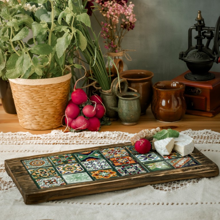 Duża, efektowna deska z 18 zielonymi płytkami Talavera. Symbol harmonii i natury.