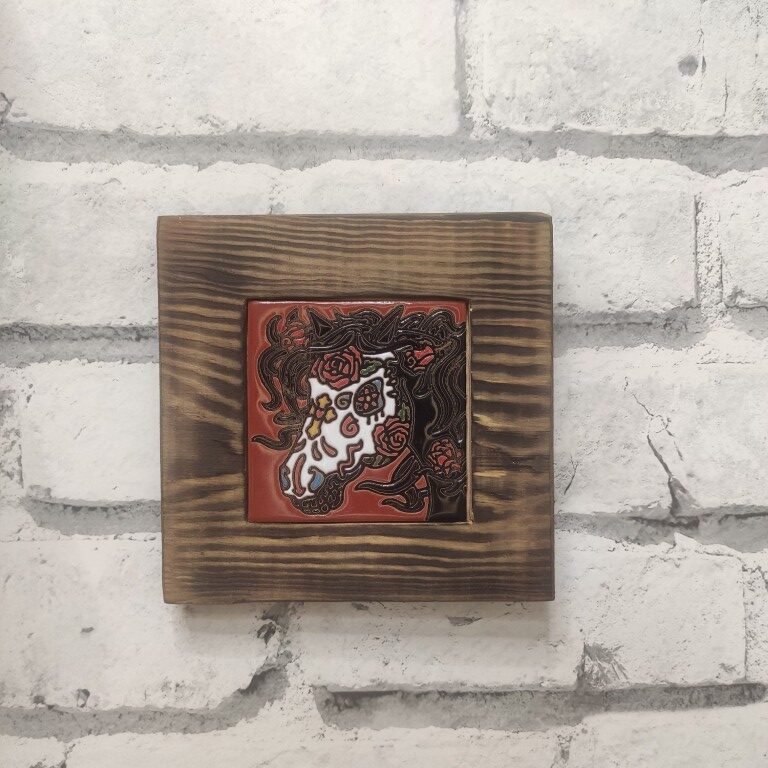 Sprawdza się jako ozdoba ścienna, element dekoracyjnej deski lub część większego zestawu kafelków. Płytka dodaje przestrzeni energia, elegancję i wyjątkowy klimat w duchu Día de los Muertos.