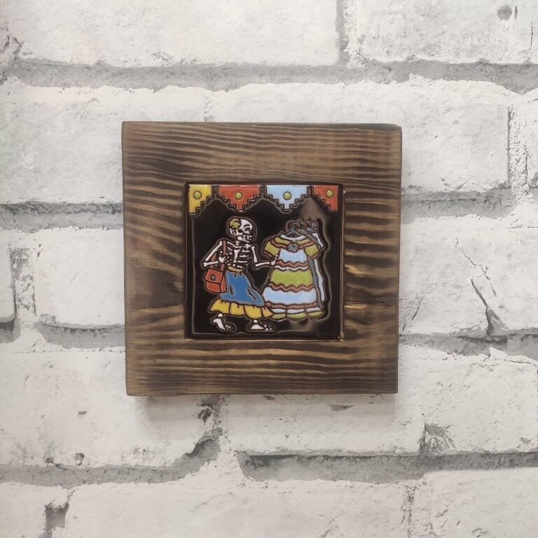 Ręcznie wykonana płytka Catrina Klientka to wyjątkowy element dekoracyjny z serii Catrina Talavera, inspirowanej meksykańskim Día de los Muertos.