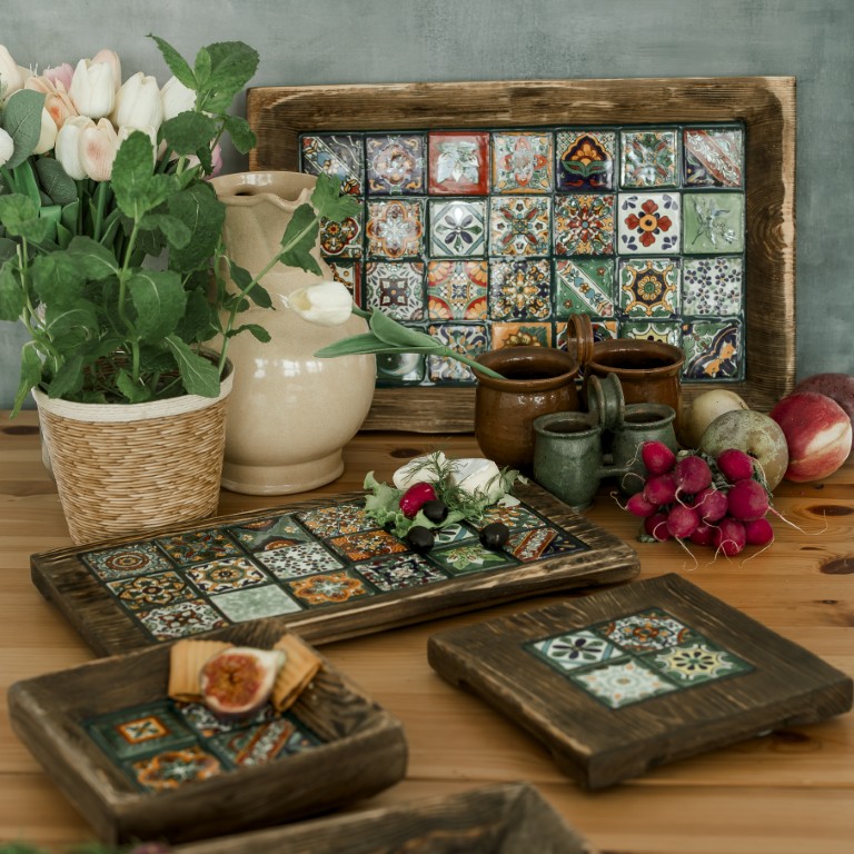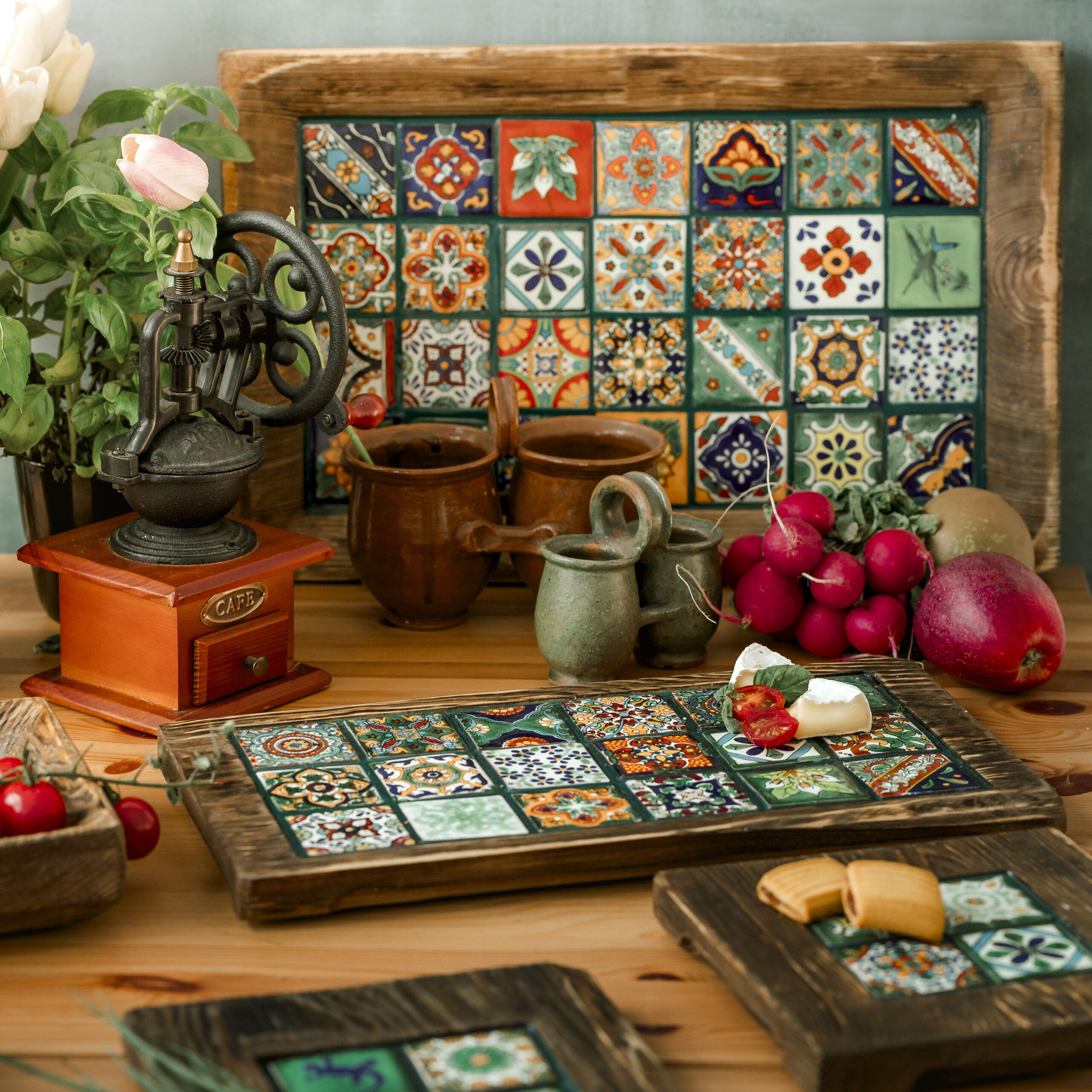 To prawdziwe dzieło sztuki użytkowej – miska z 28 ręcznie malowanymi płytkami Talavera w odcieniach zieleni. Łączy w sobie moc natury, elegancję i rzemieślniczy kunszt. Idealna jako misa na owoce, pieczywo czy element dekoracyjny.