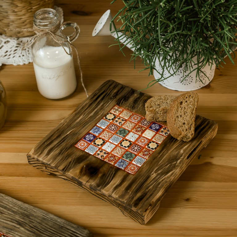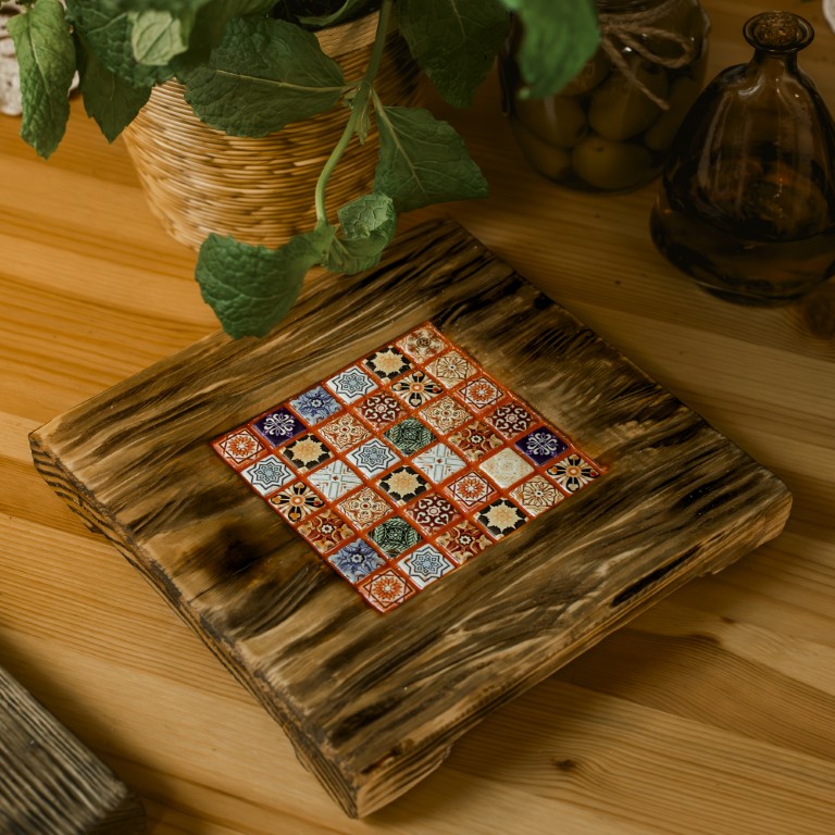 Deska do serwowania 20×20 cm z mikro mozaiką – styl marokański